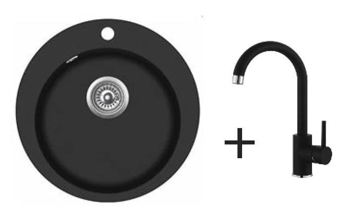 Granīta izlietne 505x505 Black + Virtuves maisītājs 5523